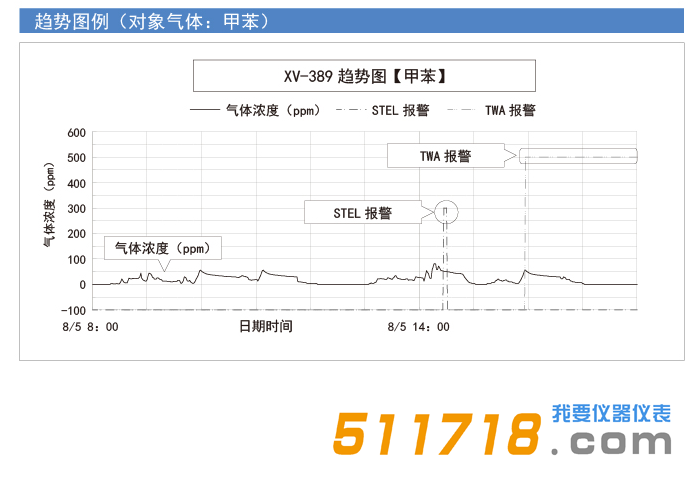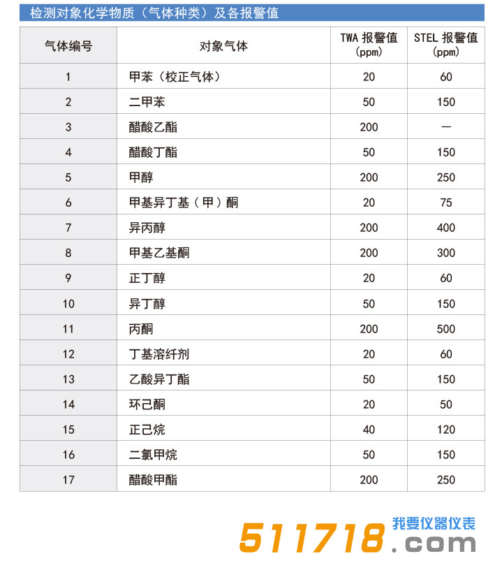 報警設定值:TWA報警:8小時暴露界限值;STEL報警:短時間(15分鐘)暴露界限值