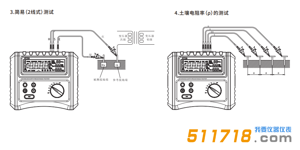 可進(jìn)行2、3、4線式接地電阻測(cè)試和土壤電阻率測(cè)試