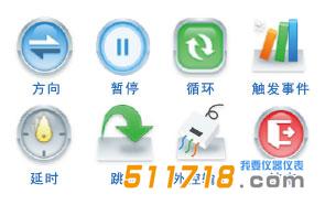 · 提供8種邏輯控制模塊:方向、延時、事件觸發、狀態輸出、暫停、跳轉、循環、停止